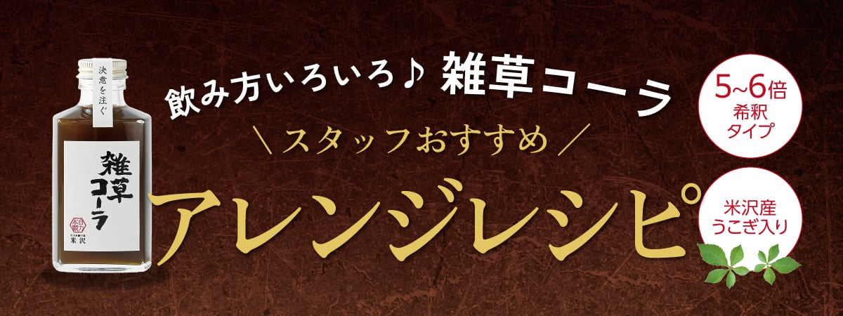 −決意を注ぐ− 雑草コーラ 誰もが見過ごす雑草に、 米沢の人々は価値を見いだし、 命をつないできました。 米沢藩 第九代藩主・上杉鷹山公の時代。困窮する藩財政のなか、度重なる飢饉に直面した人々は雑草すら食し、草木に感謝を捧げ、数々の困難を乗り越えてきました。 時を超えて「なさねば成らぬ」の精神は今もこの地に息づいています。 どんなに踏まれても、また立ち上がる。米沢に根づく雑草魂と、あなたの決意を注ぐ一杯です。 ◎雑草コーラの味わい 米沢特産「うこぎ」の他、シナモン、クローブ、カルダモンなどのスパイスをベースに、レモンや砂糖などを煮詰めて作られています。スパイスの芳醇な香りとピリッとした刺激、柑橘類の爽やかな酸味や甘み、そして「うこぎ」が複雑に絡み合い、自然で素朴な味わいが特徴です。 ※この商品は専用の紙袋をお付けいたします。 【公式オンラインショップ購入特典】 1回のご購入につき、「自力本願ステッカー」を1枚プレゼント! ------------------------------------------------ YBC山形放送「ピヨ卵ワイド」・MMTミヤギテレビ「OH!バンデス」の〈バンたま太鼓判〉で「雑草コーラ」をご紹介いただきました! ------------------------------------------------