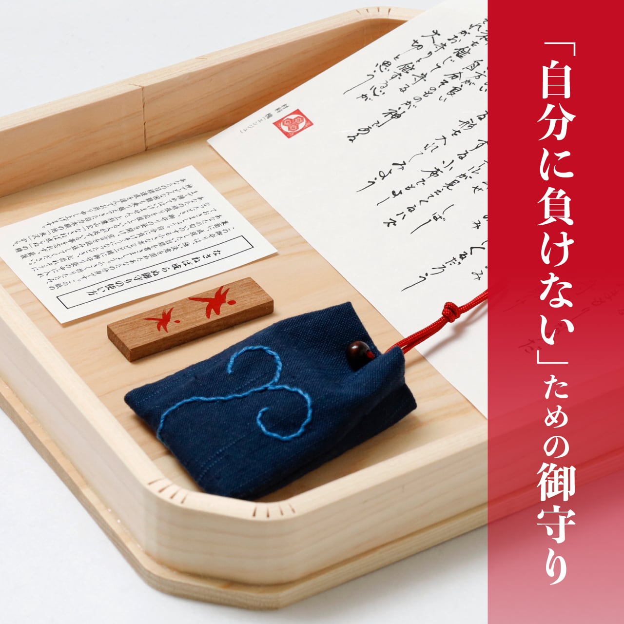 最後まで諦めず実行すれば、どんな事でも必ず成就する、あなたの頑張りを応援している人が必ずいる事を忘れないでほしい、そんな想いがこの御守りに込められています。